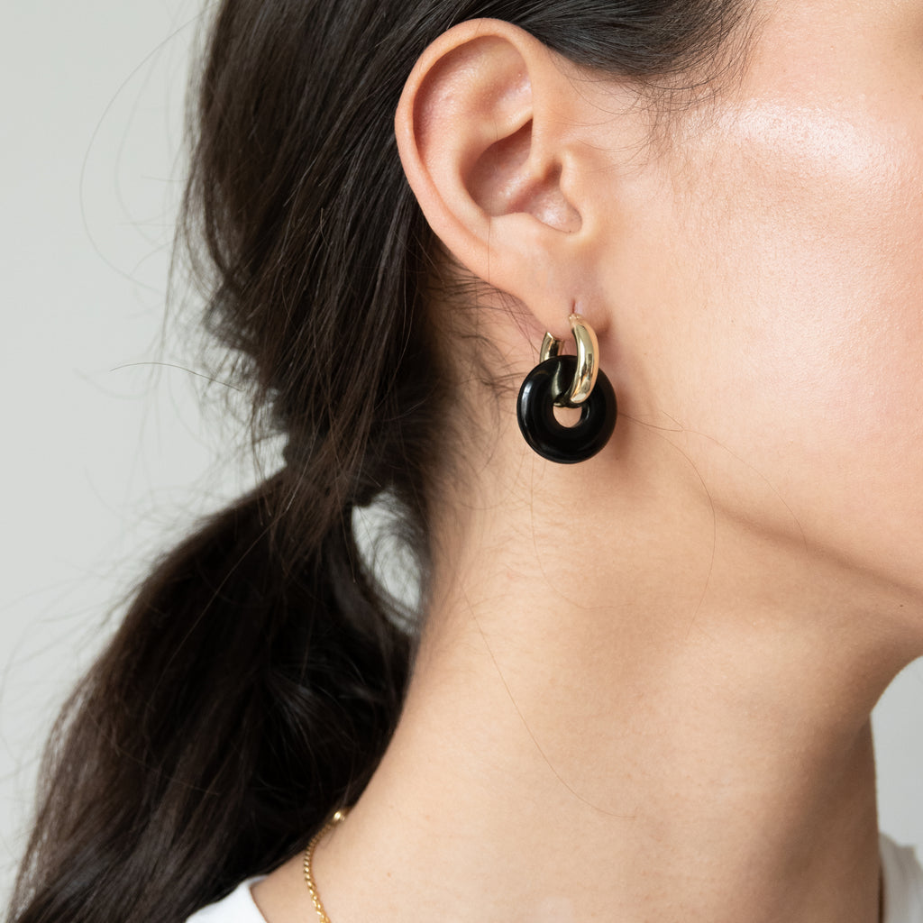 These Creoles + Medium Onyx are a wonderful set to start your Mix & Match Collection. Choose between our Oval or Big Creoles to start. These can also be worn as simple everyday hoop earrings without the pendants. Next choose your pendant combination: feeling colorful? Try a double set of our Onyx gemstone pendants. If you’re looking for an extra unique piece to add to your jewelry box select one of our pearl pendants to go with your Onyx Pendant: our Keshi pearls are slightly smaller, while our Baroque Pearls are bulbous and round. Either asymmetrical pair of earring pendants is sure to make a statement.