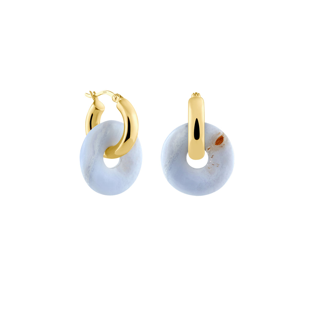 Unsere Kreolen + Medium Chalcedon werden aus recyceltem Silber hergestellt und mit 18K dick vergoldet. Bei all unseren vergoldeten Produkten ist uns eine hochwertige und starke Legierung besonders wichtig. Unsere Kreolen sind leicht und daher sehr angenehm zu tragen. Für Allergiker geeignet.